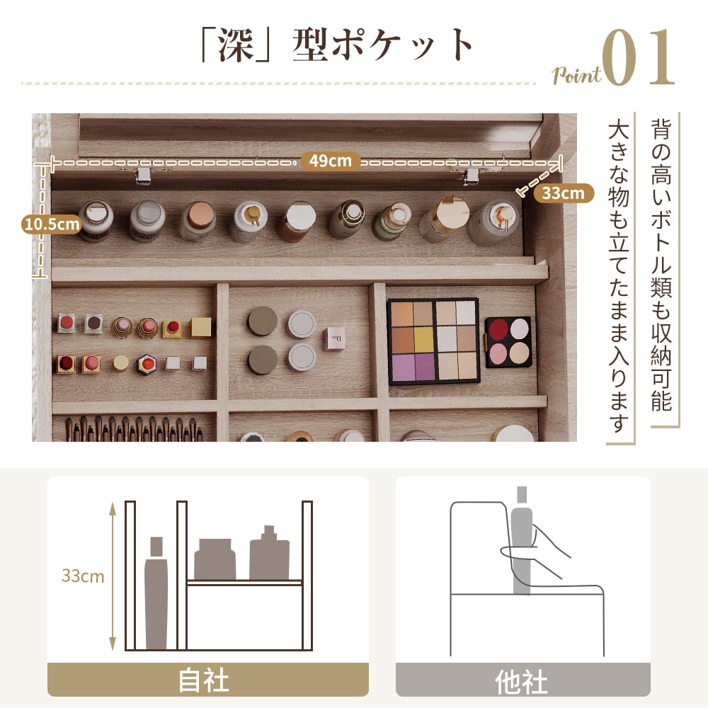 スキンケア用品やドライヤーなど、大きめのアイテムも収納可能。