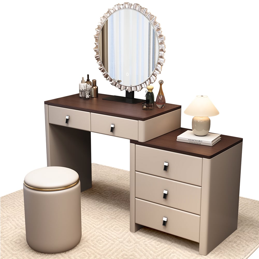 Tiktok ドレッサー おしゃれ 北欧風|LEDライト付きミラー|伸縮式・大容量収納・化粧台・デスク兼用|ナチュラル高級感MDF素材 【スツールなしタイプ】P18-ns