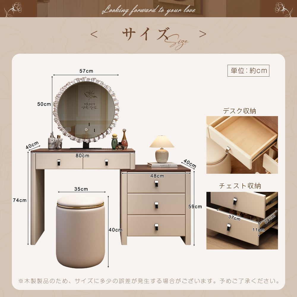 コンパクトながらも多機能で、化粧台としてもデスクとしても使える万能アイテム。