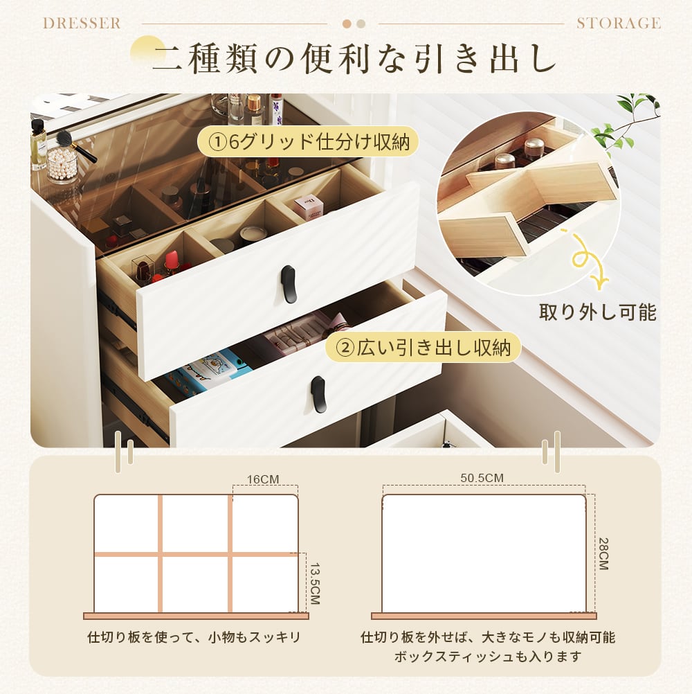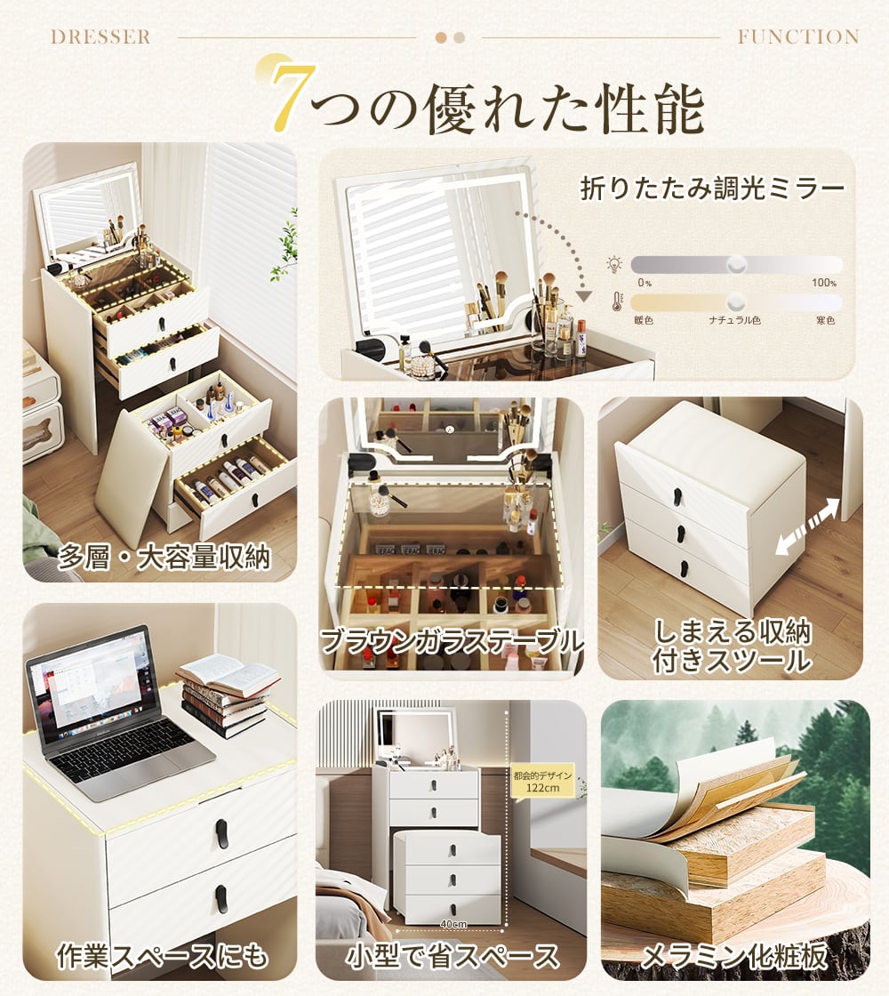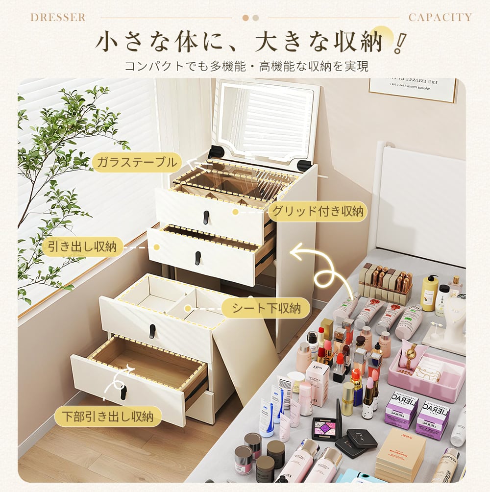 限られたスペースでも、必要な機能をしっかりと備え、毎日のメイクやスキンケアを快適に整えるための一台です。