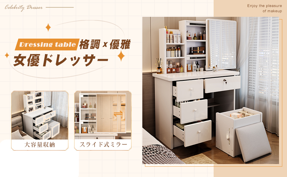 • 機能:スライドミラー/3段大容量収納/鍵付き引き出し